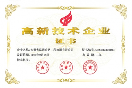 12月14日,安徽省交通建設(shè)股份有限公司下屬全資子公司安徽省路通公路工程檢測有限公司(以下簡稱路通檢測公司或公司)喜獲“高新技術(shù)企業(yè)”榮譽,標志著路通檢測公司正...